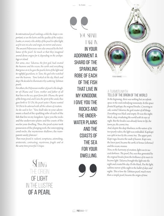 Les bijoux Pearl Romance apparaissent dans le magazine de perles le plus prestigieux de Polynésie-Française, Poerava. Découvrez les articles et les bijoux mis en avant ci-dessous.
